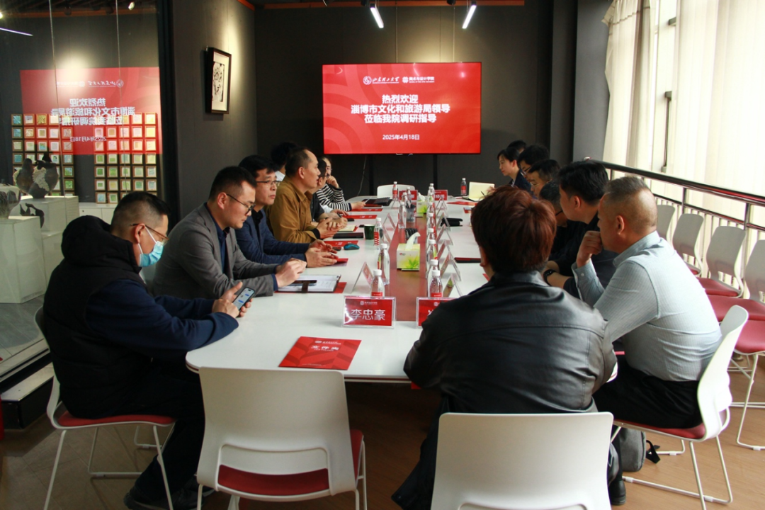 4月18日下午,淄博市文化和旅游局党组副书记、副局长严旭一行来学院座谈交流,学院负责人和各系主任参加座谈交流。