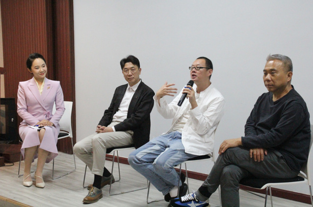 讲座之后,淄博市广播电视台节目主持人吴岳琪主持座谈,邀约刘庆杨、赵野、胡赳赳与广大学子展开分享与交流。赵野、胡赳赳先后就昌马石窟的文化特点以及研学心得与大家交流,并回答师生的提问。