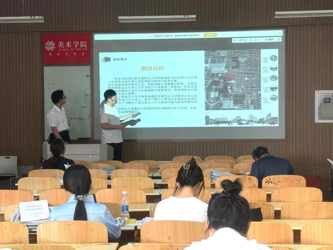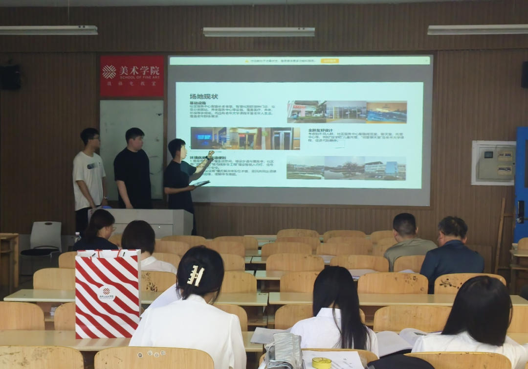 答辩现场,毕业生们围绕选题立意、构图设计、研究方法、创新能力等多个方面,通过PPT汇报和实物模型展示等形式向评委老师们详细阐述了毕业论文(设计)成果。评委们结合现场汇报、审阅论文材料,对毕业设计(论文)提出修改意见和建议。
