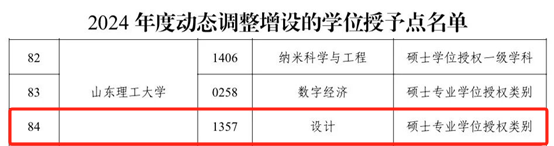 近日,国务院学位委员会印发《关于下达2024年度动态调整撤销和增设的学位授予点名单的通知》(学位〔2025〕9号),我院新增设计硕士学位授予点。