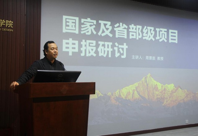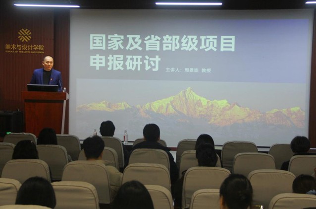 11月10日下午,美术与设计学院在11号教学楼报告厅举办稷下讲坛学术活动,邀请浙江理工大学艺术与设计学院周景崇教授以《国家及省部级项目申报研讨》为题作学术交流,院长吕群星、副院长高明伟及部分师生代表参加。