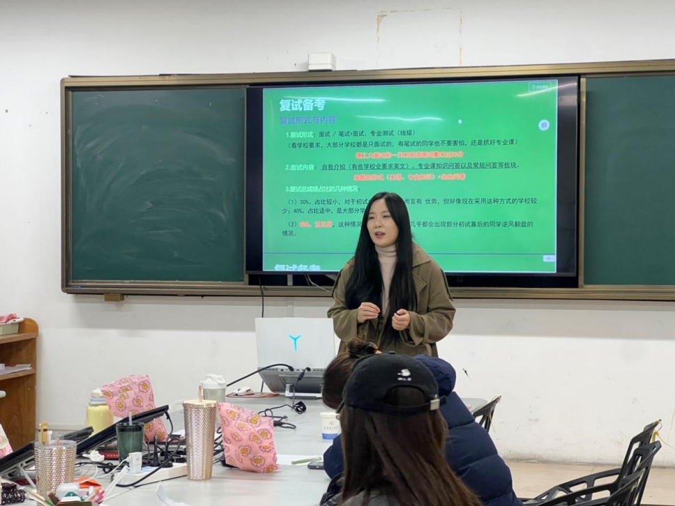 会后,庄瑾妍、李博受邀为同学们分享了考研备考和求职经验。