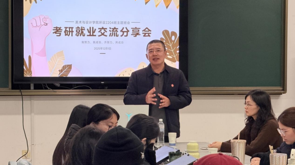 会上,朱星辉面向同学们开展了考研就业指导。他分析了环境设计行业趋势和当前的就业形势,鼓励同学们要做好长期职业规划,拓展就业视野,积极学习利用人工智能等新技术,结合专业不断提升核心素养和复合能力,提高就业竞争力。他还指出,同学们要明确自己是生命安全的第一责任人,强化安全意识,做到文明出行。