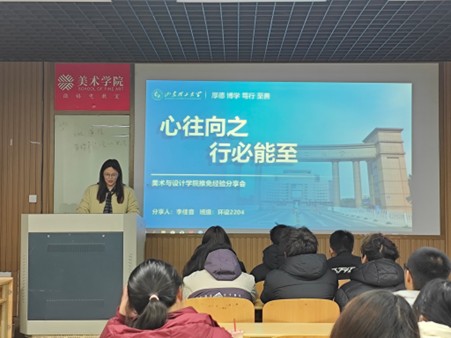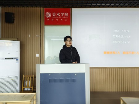 国画2203班秦靓丽在分享中着重强调,平均学分绩点是推免的核心竞争力,建议英语四、六级成绩达到500分以上,以增强申请院校优势。她详细讲解了推免分阶段准备策略,提醒同学们提前规划个人作品集,通过多渠道搜集目标院校信息以实现精准投递。同时,她特别提醒大家密切关注推免政策动态变化,面试前针对性开展专业知识复盘与英语能力强化,做好充足准备。