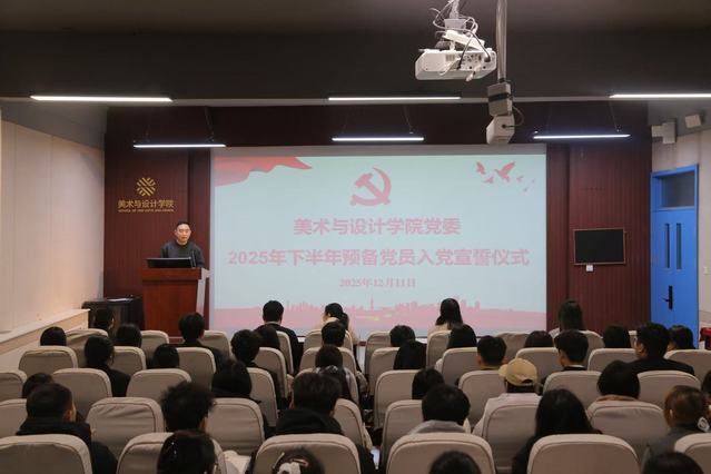 李霞代表学院党委向新发展的预备党员表示祝贺,就如何更好地发挥党员先锋模范作用,她提出三点希望与要求:一是以“红心铸魂”强信念,在深学党的二十届四中全会精神中坚定政治方向。要持续深学细悟习近平新时代中国特色社会主义思想,用党的创新理论指导实践,用画笔描绘党的奋斗历程,用设计诠释家国情怀。二是以“画笔担当”践使命,在服务“十五五”蓝图中彰显先锋本色。要强化责任担当,深入乡村振兴一线,用墙体彩绘扮靓乡村风貌,用文创设计赋能农产品包装,用美术课程点亮留守儿童艺术梦想,用公益设计传递温暖力量,在实践奉献中锤炼过硬本领。三是以“清风正气”守底线,在深化从严治党中永葆政治本色。要牢固树立底线思维,在思想上政治上始终与党中央保持高度一致,规范自己的言行举止,始终做到言行一致、表里如一,自觉接受党组织、师生群众的监督。