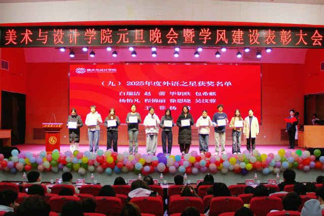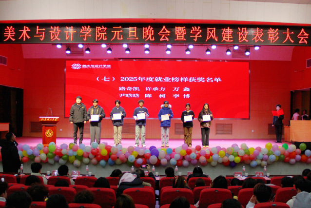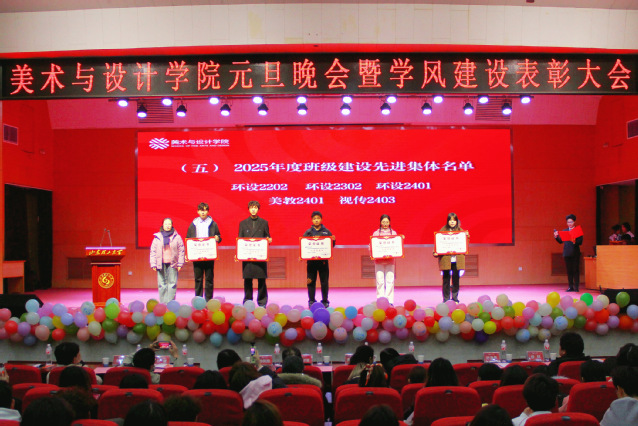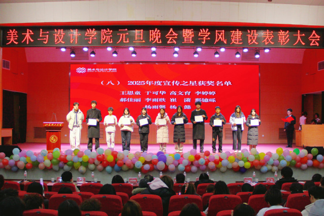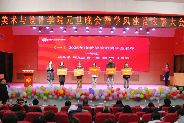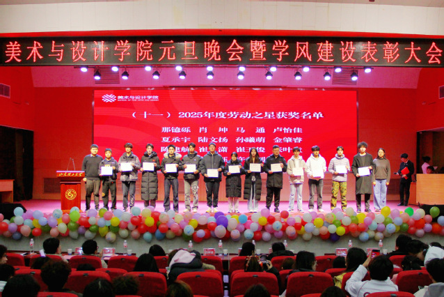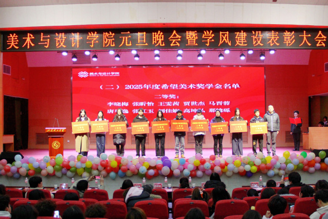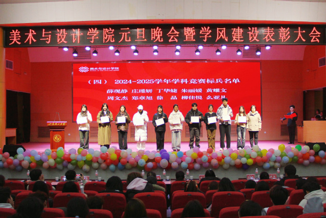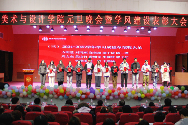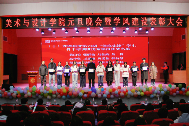 12月26日晚,美术与设计学院在3号教学楼报告厅举行2025年学风建设表彰大会,表彰先进、树立典型,激励全院学生向榜样看齐,营造优良学风。学院领导班子成员出席、各科(系)室主任、全体辅导员及获奖学生代表参加。