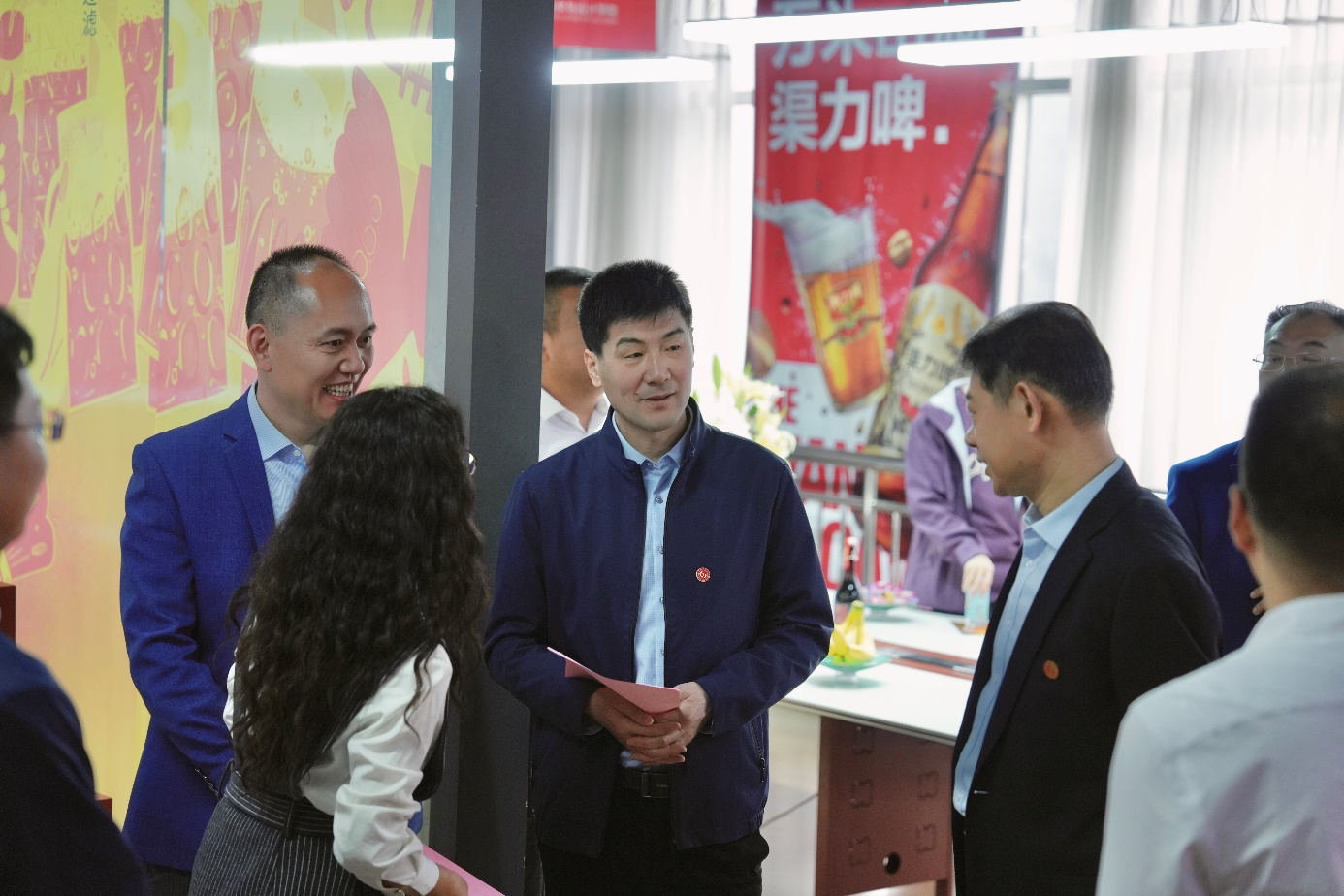 焦政源详细介绍了万米山洞品牌项目的背景、推进历程及阶段性成果。视觉传达设计系主任孙海燕汇报了学院品牌工作室与万米山洞啤酒有限公司的合作进展与实践成效。