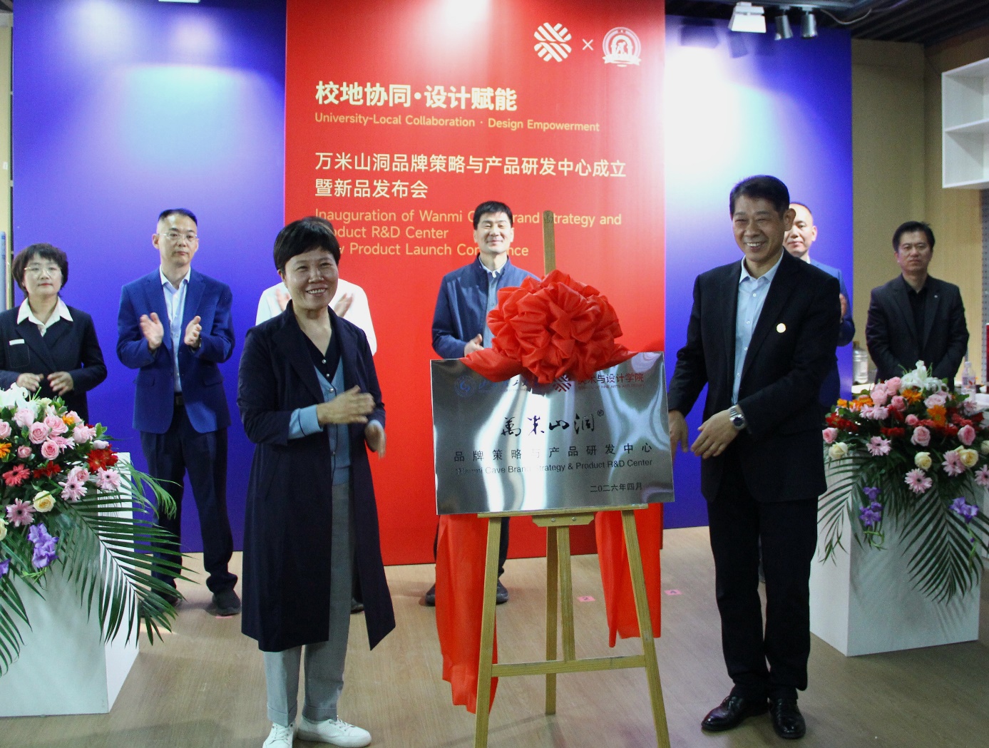 校地协同,设计赋能。4月13日上午,万米山洞品牌策略与产品研发中心成立暨新品发布会在11号教学楼一楼展厅举行。